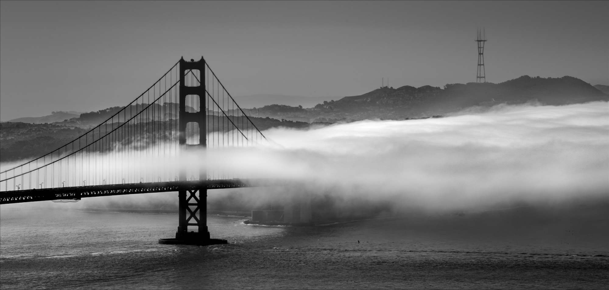The full moon over the ocean, near the Sutro Baths in San Francisco.